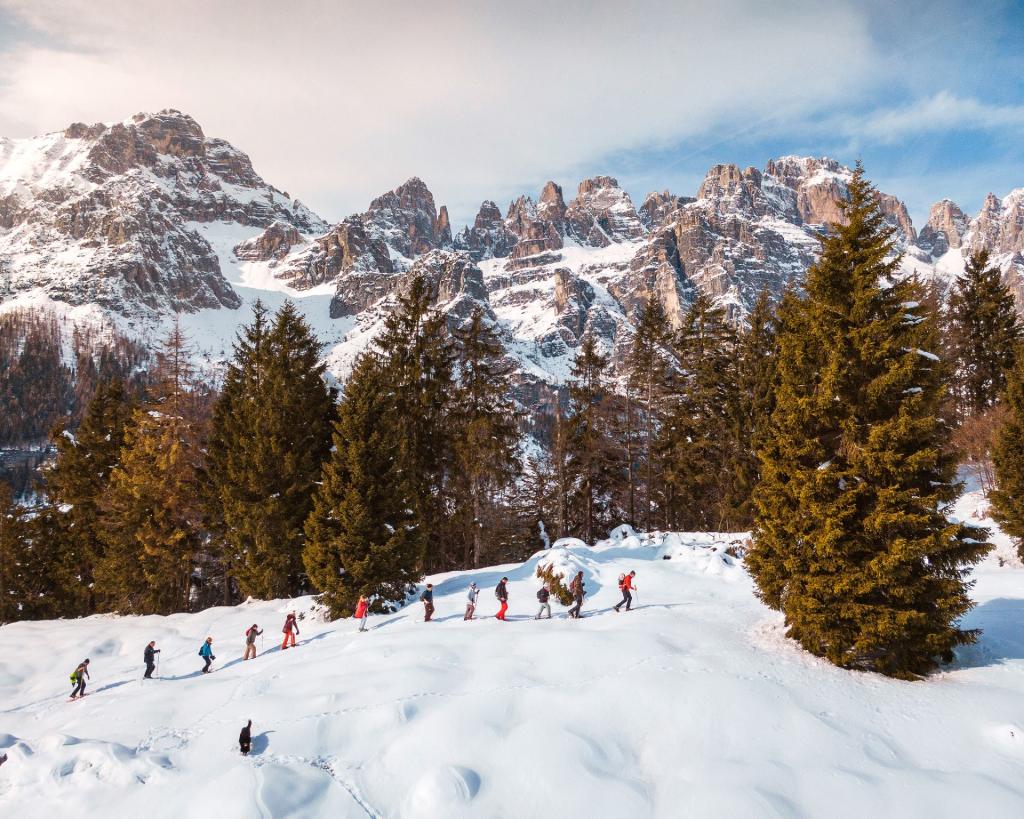 Passeggiare con le ciaspole, le racchette da neve che si agganciano ai piedi ti permette di vivere la maestosità della montagna ed il suo mantoi innevati.